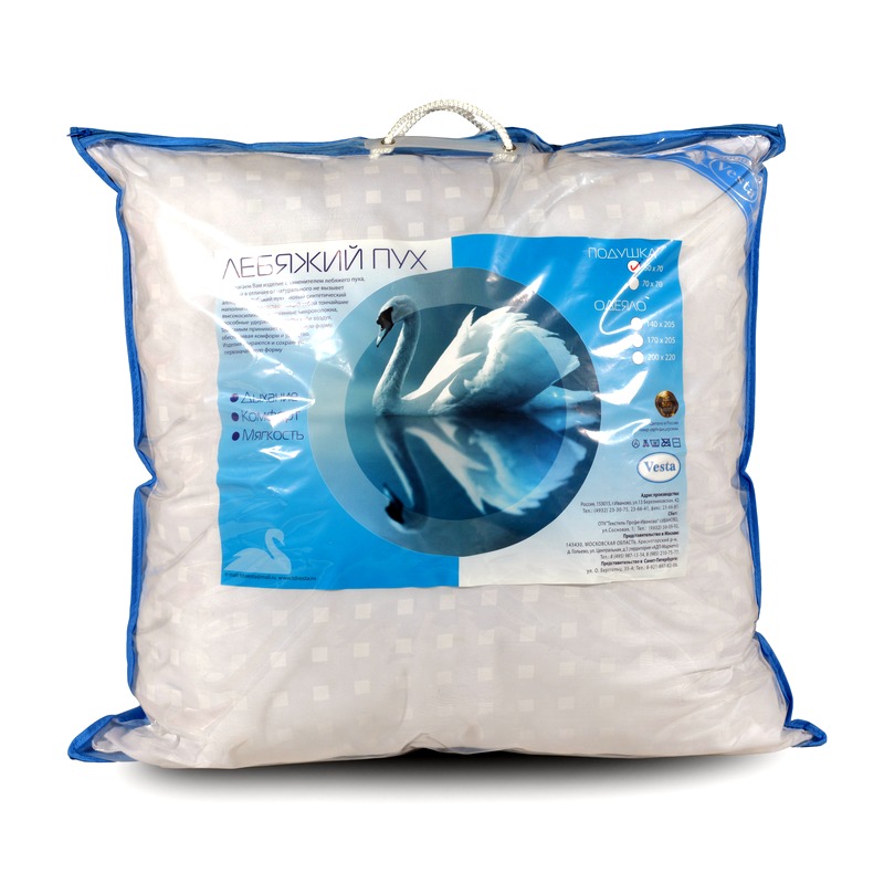 Подушки из лебяжьего пуха самые легкие, комфортные и самые востребованные. Структура искусственного пуха лебяжьего, это закрученные по спирали и обработанные силиконом полиэфирные волокна. Они переплетаются между собой, создавая очень нежную, мягкую, и в то же время упругую структуру. Искусственный пух в отличие от настоящего не вызывает аллергии, в нем не заводятся паразиты. Наполнитель не впитывает посторонние запахи.
